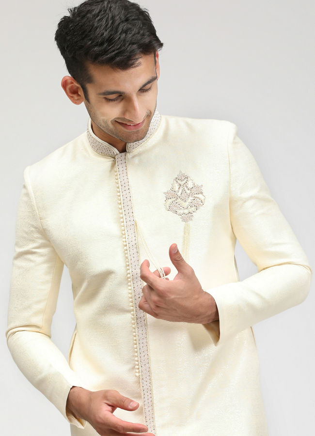 Manyavar white cheap sherwani